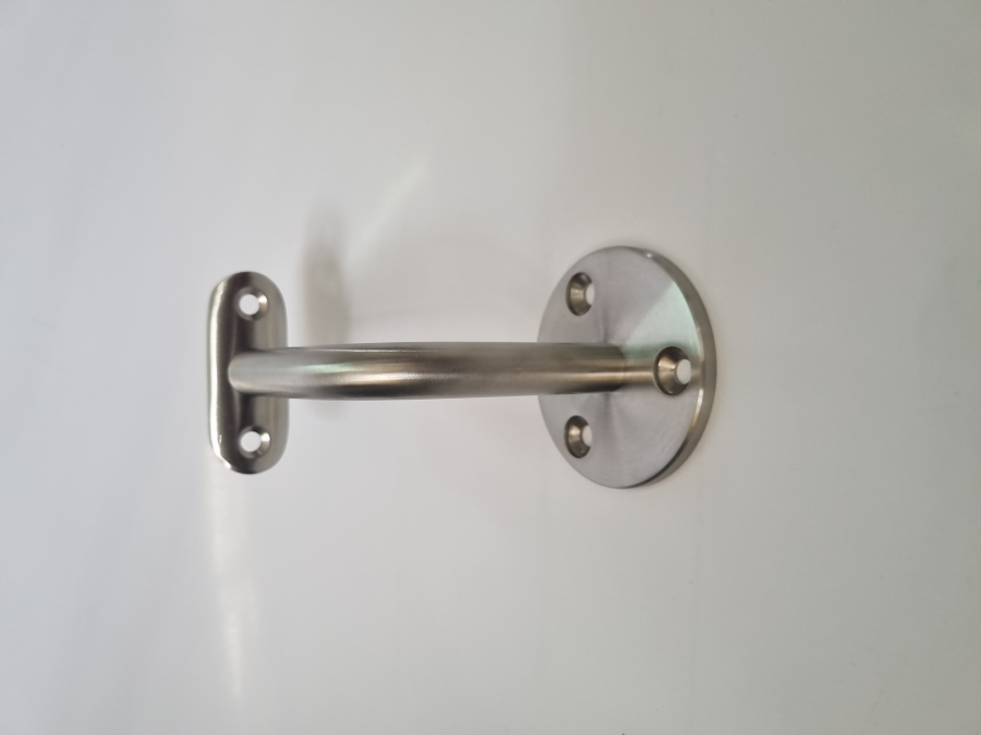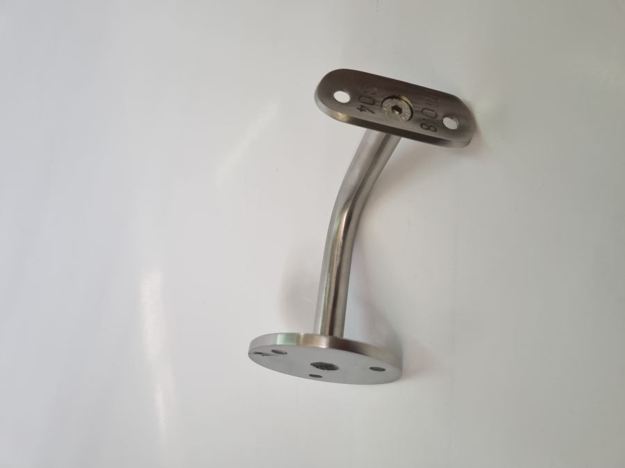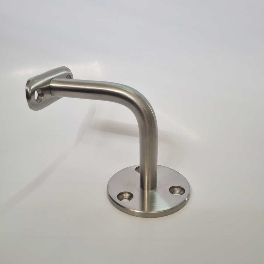 SOPORTE PARA PASAMANOS DE 2", SIN TAPA FLANGE. ANCLAJE DE 68 MM CON 3 PERFORACIONES, VÁSTAGO DE 14 MM A 90° 80X80 MM. FABRICADO EN ACERO INOXIDABLE CALIDAD 304, TERMINACIÓN SATINADA.