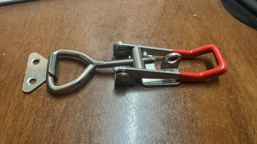BROCHE TIPO CANGREJO INOXIDABLE CALIDAD 304, MEDIDAS: 150X48MM. CON AJUSTE DE TENSIÓN EN BARRA DE 7.0 MM. ESPESOR DEL CUERPO 3.0MM. BARRA DE 7.0MM. PERFORACIONES DE 4.5MM. PORTA CANDADO DE 10MM.