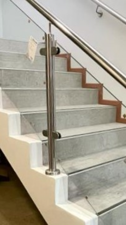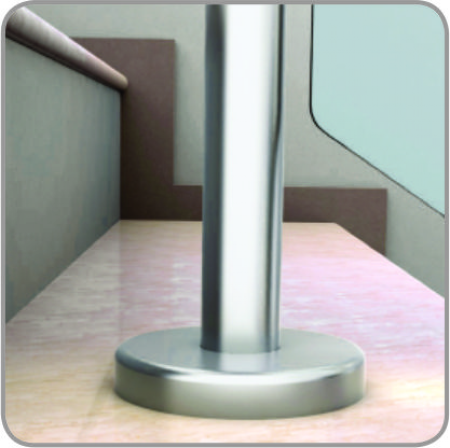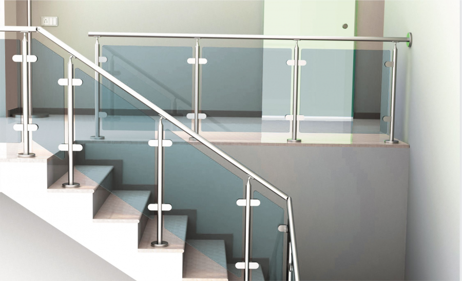 TUBO DE 2"X2.0 MM CON CUATRO PINZAS PARA CRISTAL Y HERRAJE ESPIGA SOPORTE PARA PASAMANOS