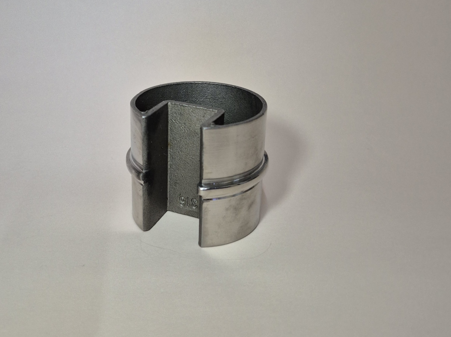 COPLA PARA PASAMANO ACANALADO DE 2" X 1.5 MM. CANAL DE 15X15 MM, EMBUTE 20 MM. FABRICADO EN ACERO INOXIDABLE CALIDAD 304, TERMINACIÓN BRILLO ESPEJO.